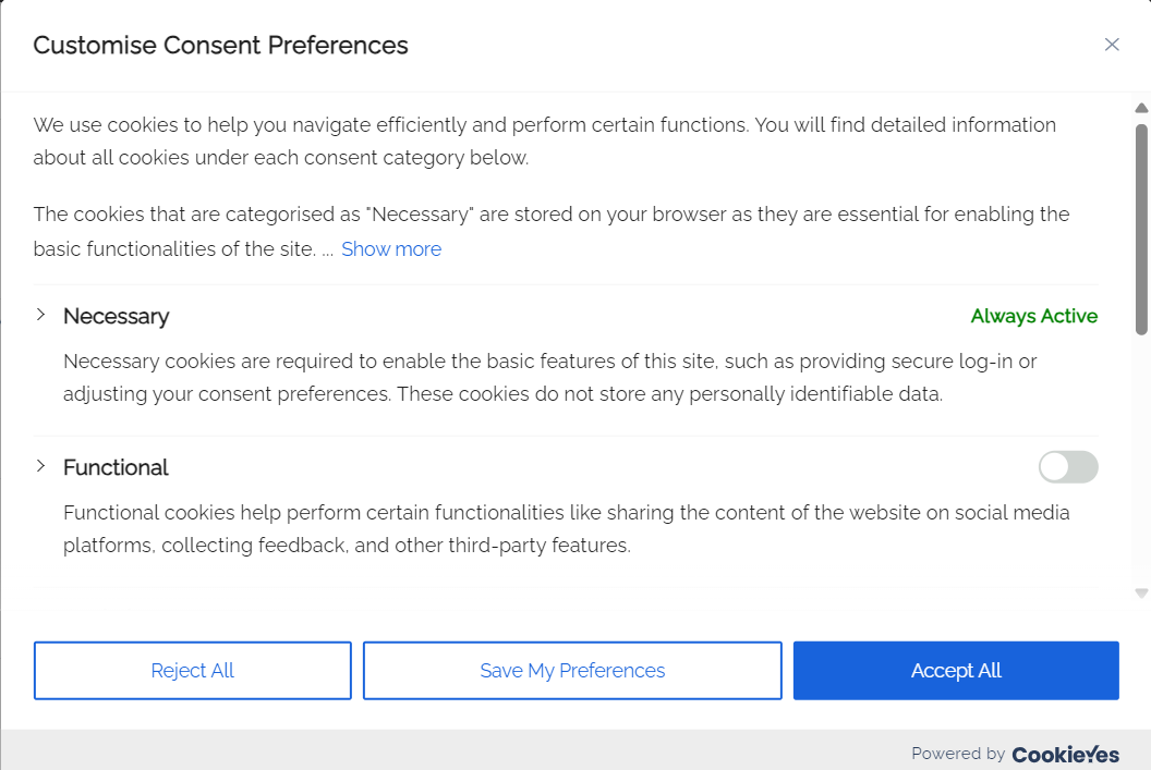 Users may access the list of cookies by selecting the “consent preferences” icon
